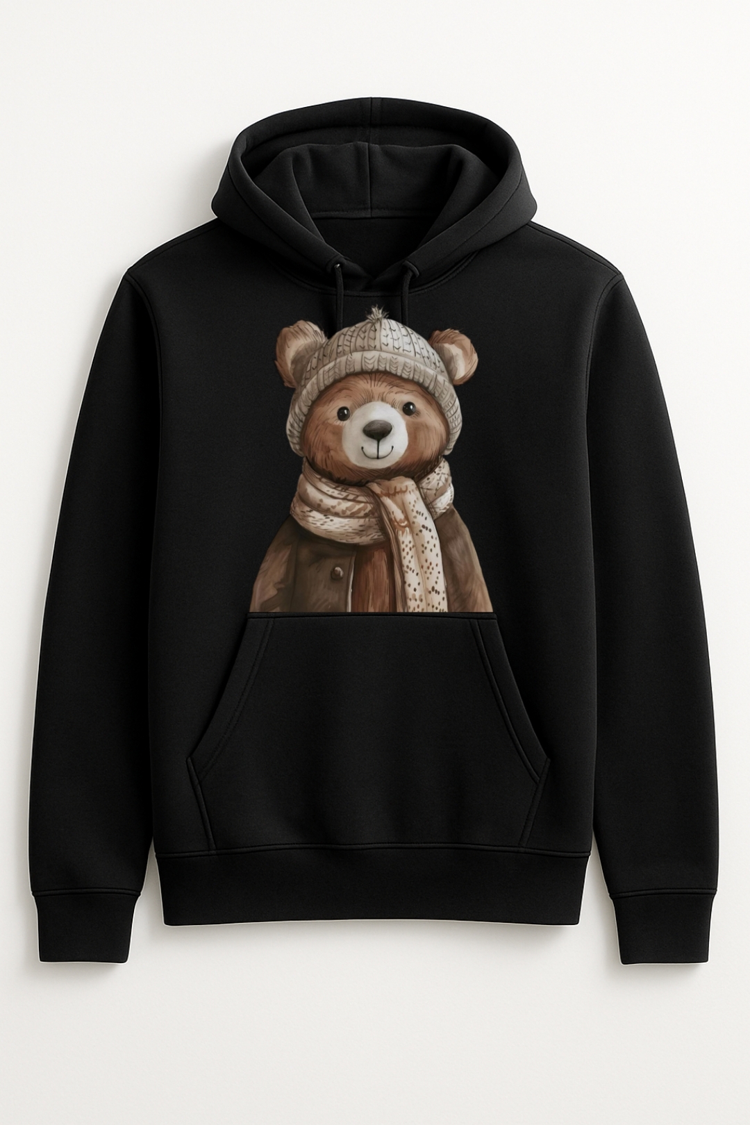 هودی زنانه چاپ خرس پنبه سه نخ خارخورده در رنگ بندی و سایزبندی متنوع کد۱۴