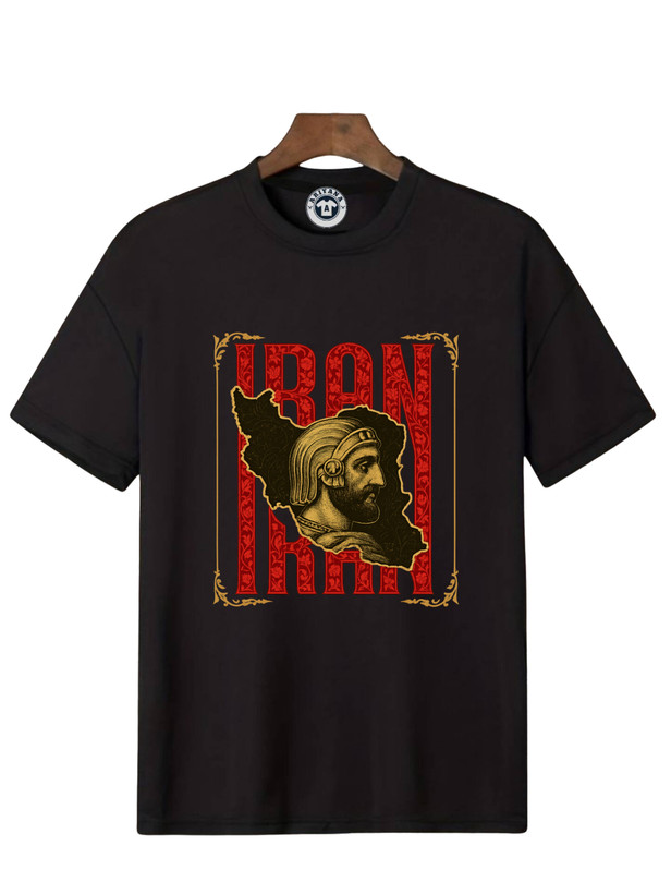 تیشرت با رنگ مشکی و چاپ باکیفیت کوروش و ایران