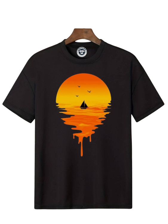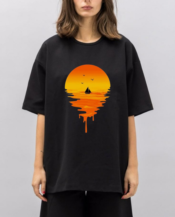 تیشرت آریانا چاپ غروب خورشید قواره لانگ جنس نخ پنبه درجه یک