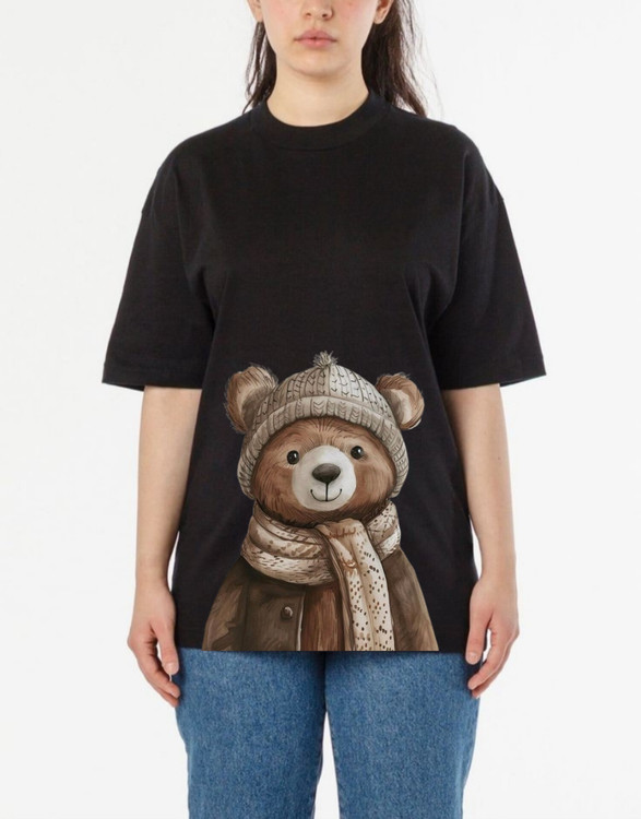 تیشرت چاپ خرس کلاه دار قواره لانگ جنس نخ پنبه درجه یک برند آریانا