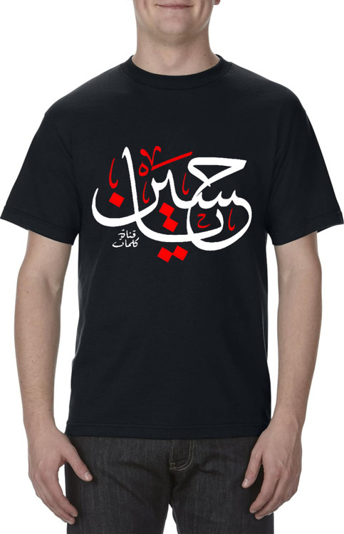 تیشرت محرمی چاپ یاحسین جنس نخ پنبه ۱۰۰ درصد قواره لانگ برند آریانا
